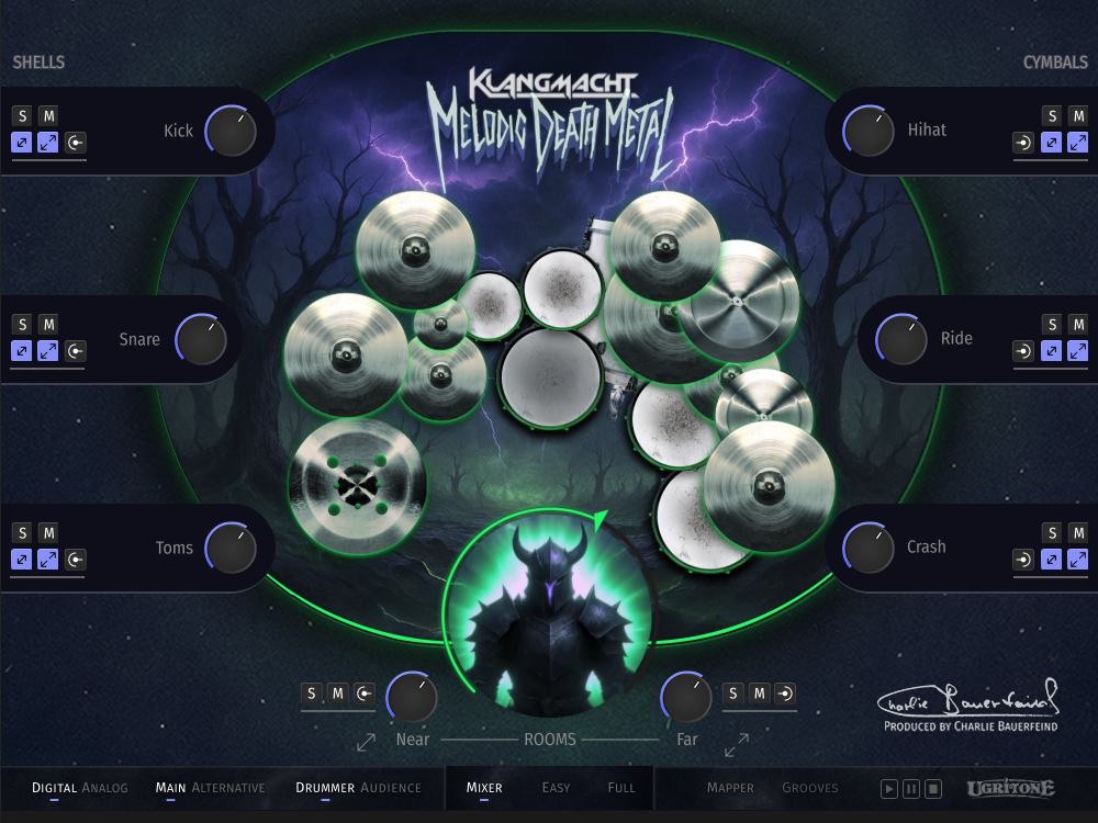 - Craftmanship: Charlie Bauerfeind - All Klangmacht Drum Plugins are masterfully shaped by legendary producer Charlie Bauerfeind. Charlie is a powerhouse in metal production, renowned for his impeccable ear and dynamic approach. Each microphone was carefully pre-routed to stems, premixed, and preprocessed by Charlie, ensuring that every hit, crash, and thump you trigger is full of character and production-ready, sent with love right into your studio, waiting to be shaped into your next masterpiece.